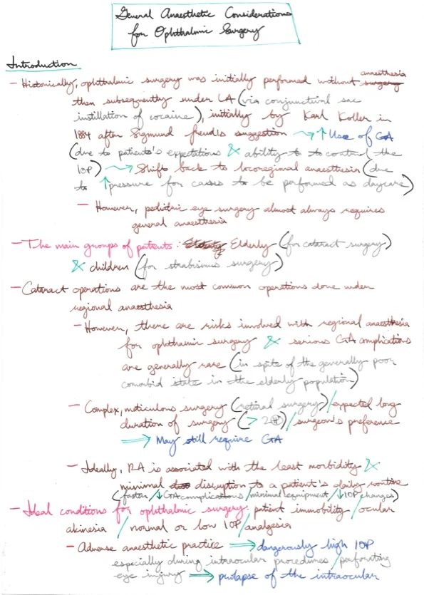 General Anaesthetic Considerations for Ophthalmic Surgery